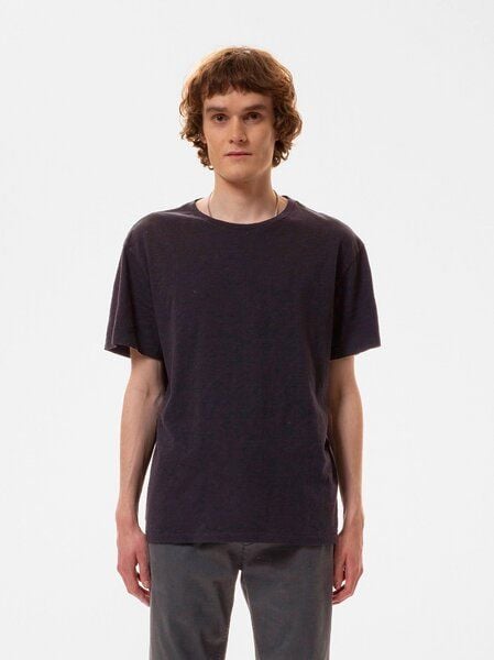 Einfarbiges T-Shirt mit Rundhalsausschnitt und normaler Passform aus Bio-Baumwolljersey mit Garnverdickungen. Abgerundet mit einer 1×1-Halsrippe und Mäusezahnstichen am Ärmel und am unteren Saum. Details: – Basic T-Shirt – 1×1 Rippbündchen am Hals – Normale Passform – Material: 100% Baumwolle (Bio)