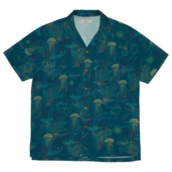 Nudie Jeans Kurzarm-Hemd Arvid Hawaii Deep Sea