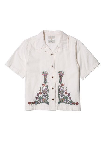 Die mit floralem Muster bestickte sommerliche Bluse Moa Floral von Nudie Jeans liegt leicht auf der Haut und ist mit ihren kurzen Ärmeln wie gemacht für heiße Tage. Das Oberteil ist locker geschnitten und besteht zu 100% aus angenehm zu tragender Bio-Baumwolle.