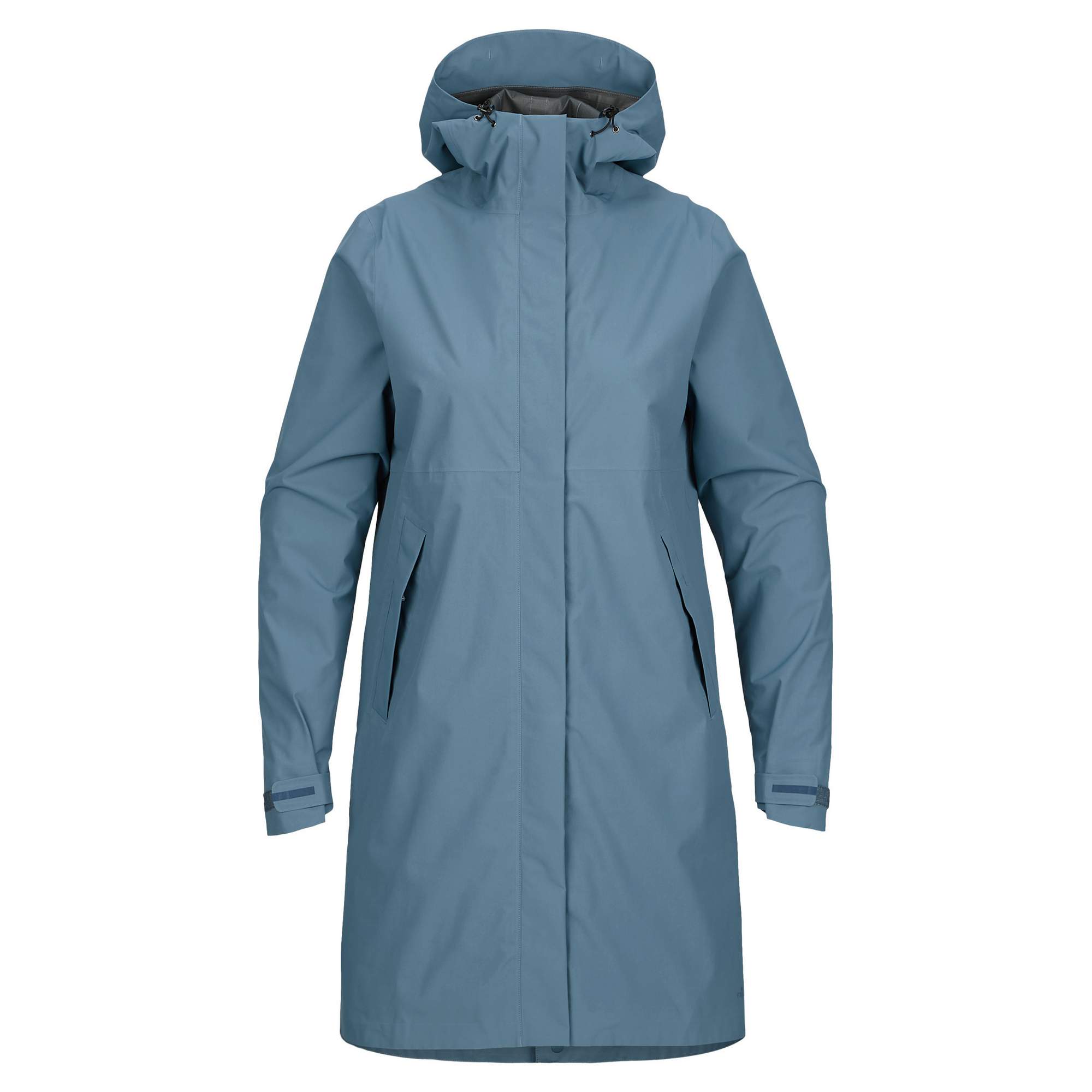 Eleganter Regenmantel mit hohem Wetterschutz An Tagen, an denen das Wetter sich von seiner dunklen Seite zeigt, erstrahlt der Raneva Regenmantel in vollem Glanz. Mit hoher Wassersäule und komfortablen Details hält er dich lang(e) trocken. Stilvoller Wetterschutz Dank seiner 2,5-lagigen Konstruktion ist der Ranelva Coat beim Stadtbummel oder auf Reisen bestens auf ungünstige Wetterlagen vorbereitet: Der Mantel ist dank PU-Membran wasser- und winddicht sowie atmungsaktiv. Entstehende Feuchtigkeit kann also die Membran von innen nach außen passieren. Zusätzlich zur Atmungsaktivität hat der Regenmantel zwei Einschubtaschen mit Mesh-Futter. Hierüber sowie über den 2-Wege-Front-RV kannst du zusätzlich für einen regulierten, moderaten Luftaustausch sorgen. Mit Komfort versehen Den guten Wetterschutz erhöht die Kapuze, die du vorne und hinten im Volumen regulieren kannst. Auch die Ärmelabschlüsse lassen sich für einen passgenauen Sitz in der Weite per Klettverschluss anpassen. Durch Öffnen von 2-Wege-Reißverschluss sowie Bewegungsschlitz hinten (mit Druckknopf) wird die Bewegungsfreiheit im lang geschnittenen Mantel verbessert. Details Wind- und wasserdichter Regenmantel Unterlegter 2-Wege-Front-RV mit Windschutzleiste (Druckknöpfe) Kapuze mit Volumen-Regulierung (vorne und hinten) 2 abgedeckte RV-Seitentaschen mit Mesh-Futter Aufhängeschlaufe am Rücken Regulierbare Ärmelabschlüsse Versiegelte Nähte Bewegungsschlitz mit Druckknopf PFC-freie DWR-Imprägnierung Reflektierende Designelemente