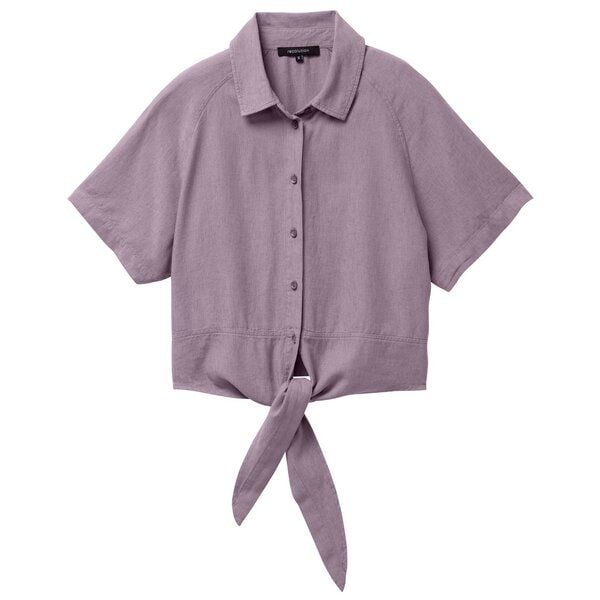 Schicke Kurzarm-Bluse für Damen aus einem tollen Leinen-Viskose-Mix in leicht verkürzter Länge. Die Bluse verfügt über ein hübsches Knoten-Detail am Saum, eine Knopfleiste und einen klassischem Hemdkragen. Ein idealer Mix aus Bluse und Hemd, der sich lässig mit Jeans oder schick stylen lässt. Durch die Lenzing EcoVero Viskose-Faser fühlt es sich wunderbar seidig-glatt an und vereint damit hautfreundliches Eco-Material mit lässigem Style. PETA approved vegan gibt dir die Gewissheit, dass keine tierischen Bestandteile verarbeitet wurden. Material: 65% Viskose (LENZING ECOVERO), 35% Leinen Made in: Türkei Zertifizierung: PETA approved vegan