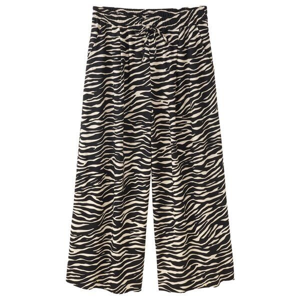 Schicke Hose für Damen aus fließendem Viskose (LENZING ECOVERO) mit markantem Zebraprint. Die Hose verfügt über einen bequemen Gummibund mit Zugband, zwei seitliche Eingrifftaschen und ist locker geschnitten. Ideal für den Alltag – schick und dazu noch unglaublich bequem. Die Hose ist zudem PETA approved vegan, damit du sicher sein kannst das keine tierischen Bestandteile verarbeitet sind. Material: 100% Viskose (LENZING ECOVERO) Made in: Türkei Zertifizierung: PETA approved vegan