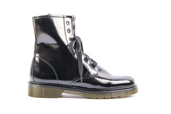 Diese schwarzen veganen Damenstiefel in Lacklederoptik passen perfekt zu einem Smart Casual Look und sind noch dazu unverwüstlich. Die Sohle ist höchst abrieb- und rutschfest und isoliert optimal gegenüber thermischen Einflüssen und Stößen. Das Baumwollfutter und die weiche interne Polsterung aus Naturkautschuk umschließt und schützt den Fuß, während dass 100% vegane Synthetikmaterial wasserundurchlässig ist egal bei welchem Wetter. Für den perfekten Kunstledereffekt wurde auf den Baumwolluntergrund ein Synthetikfilm appliziert. Das Ergebnis ist ein robuster, anpassungsfähiger und bequemer Schuh. Farbe: Schwarz Obermaterial aus Kunstleder (Synthetikfilm auf Baumwolluntegrund) Schnürsenkel in Baumwolle mit Ösen aus nickelfreien Metall Innenfutter in Baumwolle Elastische Sohle aus Synthetikmaterial