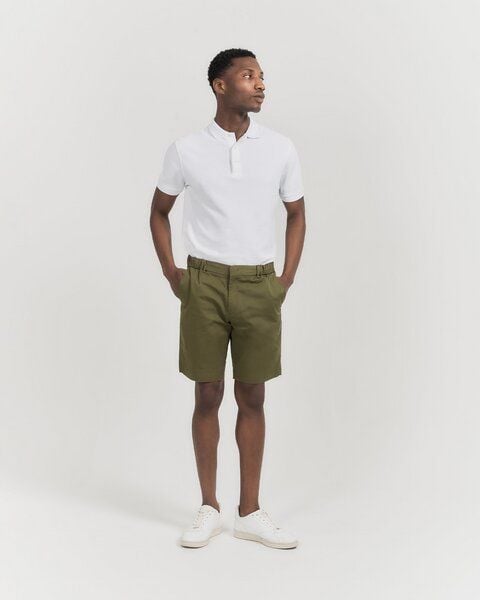 SMARTES DESIGN Während hochwertige Metallenden an den Kordeln einen luxuriösen Look schaffen, verleihen eine Smartphone-Tasche auf der Vorderseite, sowie zwei extra gesicherte Gesäßtaschen der Shorts einen praktischen Charakter. Ein hochwertiges Basics für den Alltag. KOMFORTMinimalistisches Design trifft auf Komfort. Daher haben wir uns für einen edlen Mix aus Bio-Baumwolle (97%) und Elastan (3%) entschieden. Während der hohe Baumwollanteil für natürliche Feuchtigkeitsregulation sorgt, erhöht Elastan die Flexibilität der Hose. DETAILSHandgeschneidert aus dem gleichen Stretch-Baumwoll-Stoff wie unser Chino Klassiker. Der mittelschwere Satinstoff ist besonders atmungsaktiv und wirkt durch sein mikrofeines Webmuster kühlend. Durch einen elastischen Bund, passt sie sich optimal an den Körper an und sitzt nicht nur perfekt an der Hüfte, sondern auch am Bein.