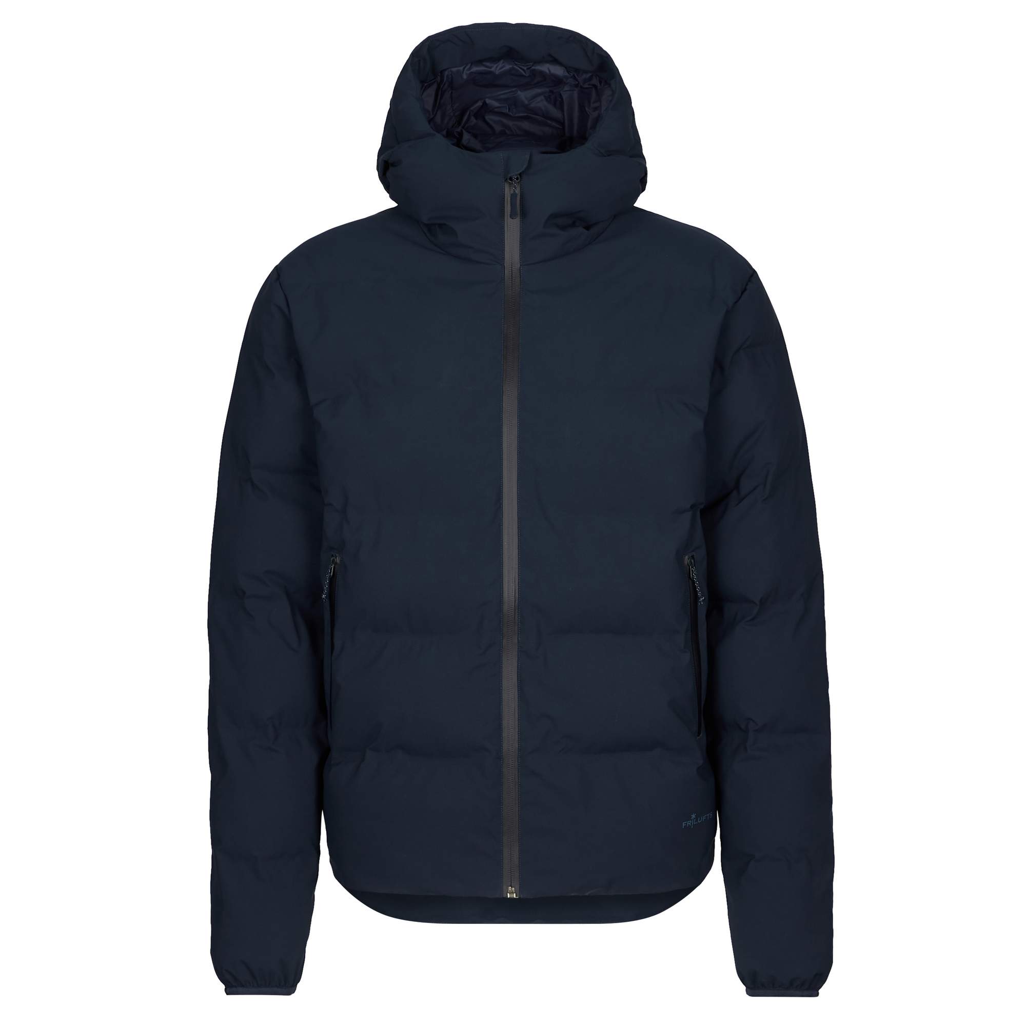 Ressourcenschonende Winterjacke Die Scharyn Padded Jacket hält dich durch die Kunstfaser-Wattierung wohlig warm und weist leichte Nässe ab. Plus: Sie überzeugt nachhaltig, denn sie besteht komplett aus recycelten Materialien! Warm und wasserabweisend Das Kunstfaser-Füllmaterial hält dich dank guter Isolationsfähigkeit bei kalter Wetterlage im Herbst und Winter wunderbar warm. Die Füllung ist unempfindlich gegenüber Feuchtigkeit und wärmt daher auch im feuchten Zustand. Umgeben ist die Wattierung von einem strapazierfähigen Polyester-Außenmaterial, das mit einer WR-Imprägnierung versehen ist. Hierdurch gelingt es leichter Nässe, ob Regen- oder Schneeschauer, nicht so einfach ins Gewebe zu dringen. Das Innenfutter aus robustem Nylon punktet mit gutem Feuchtigkeitstransport sowie der glatten Oberfläche. So kannst du die Jacke geschmeidig über einen flauschigen Midlayer ziehen. Hier ist alles recycelt! Sowohl das Außenmaterial als auch das Innenmaterial und die Wattierung bestehen komplett aus recyceltem Material. So werden wertvolle Ressourcen geschont. Außerdem ist die wasserabweisende Ausrüstung frei von umweltschädlichem PFC. Praktische Extras, schlicht-schönes Design Die Kapuze ist ebenfalls wattiert und lässt sich per Schnürzug so einstellen, dass auch bei windigem Wetter auf dem Kopf bleibt und deine Ohren warmhält. Drei Taschen bieten Platz für alles, was du unterwegs schnell zur Hand haben willst. Durch das cleane Design eignet sich die Isolationsjacke für Wanderungen durch die Natur ebenso wie für den Alltag in der Stadt. Details Wasserabweisende Winterjacke Komplett recyceltes Material Warme Kunstfaser-Füllung Kapuze mit Schnürzug Unterlegter Front-RV mit Kinnschutz 2 wasserabweisende RV-Einschubtaschen 1 Innentasche mit Frilufts-Slogan Ärmelbündchen mit Elastik-Einfassung Schnürzug im Saum PFC-freie WR-Imprägnierung