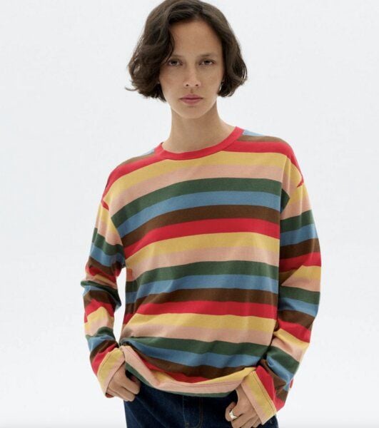 Longsleeve Emily mit bunten Streifen aus Baumwolle. Locker geschnitten, mit regulärer Länge und aus mittelschwerer Baumwolle. Ein Basic, das gute Laune macht – das ganze Jahr über!