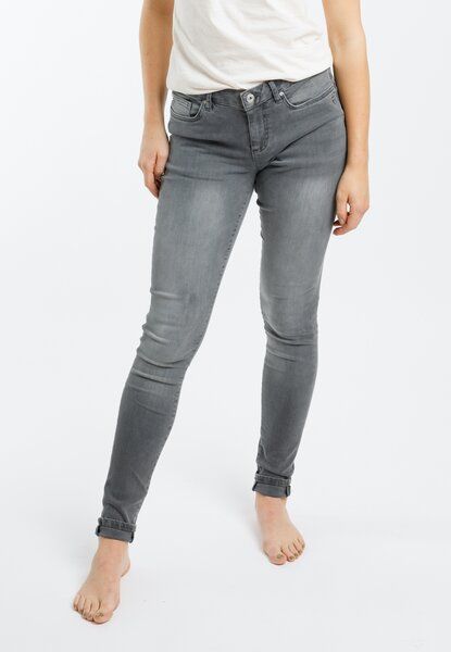 Nicht vegan? Fehler meldenDie ROSA aus grauem Denim ist eine stylische Skinny Jeans aus Bio-Baumwolle in Röhrenform. Der dehnbare Stoff macht die Hose sehr bequem und sorgt für eine körperbetonte Passform. Materialien und Details: – 92% Bio-Baumwolle, 6% T400 aus recyceltem Polyester, 2% Elasthan – veganes Logopatch aus Jacron – Skinny Fit mit sehr engem Beinschnitt, Medium Waist – Beininnenlänge: 81.3 cm bei Länge L32 / 86.4 cm bei Länge L34 – bei 30°C waschen, nicht für den Trockner geeignet Unser Model ist 1,70 m groß und trägt Größe 28/32.