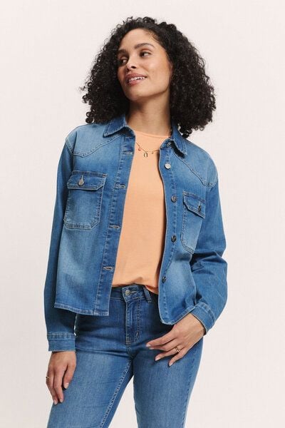 Denim. Stretch. Fair. Diese Jeansjacke vereint zeitlosen Denim-Look mit nachhaltiger Qualität und einem Hauch von Flexibilität. Gefertigt aus 100 % GOTS-zertifizierter Bio-Baumwolle mit einem kleinen Stretchanteil, bietet sie eine perfekte Passform und hohen Tragekomfort – ganz ohne Kompromisse bei Stil oder Umweltbewusstsein. Die moderne Waschung verleiht der Jacke einen lässigen, urbanen Look, während die modische Schnittführung für eine feminine Silhouette sorgt. Ob als Übergangsjacke, Layering-Piece oder stilvolles Statement – diese Jeansjacke ist ein echtes Must-have für jede Garderobe. Highlights: – 100 % Bio-Baumwolle GOTS-zertifiziert – mit Stretchanteil – moderne Waschung – Jeansjacken style – mit Taschen und Knopfleiste – Taschen in der Seitennaht