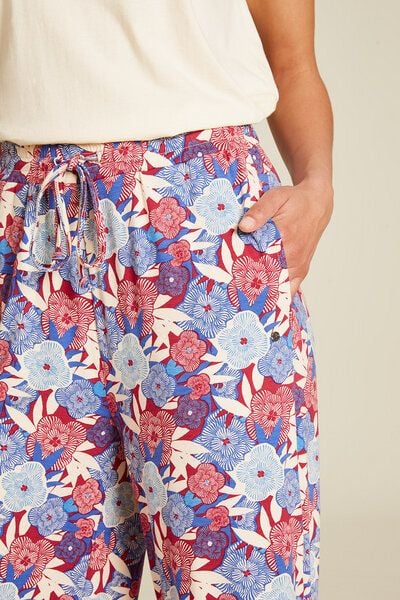 Genieße den ultimativen Tragekomfort mit unserer luftigen Hose aus nachhaltiger EcoVero Viskose, mit Stretchanteil. Der ausgestellte Schnitt am Bein verleiht der Hose eine leichte und luftige Ausstrahlung, während praktische Taschen Funktionalität mit Stil verbinden. Ein Bindebändchen setzt nicht nur modische Akzente, sondern ermöglicht auch eine individuelle Anpassung für den besten Tragekomfort. Der lässige Schnitt macht diese Hose zu einem perfekten Begleiter an warmen Tagen und bietet vielseitige Kombinationsmöglichkeiten für deinen stilvollen Auftritt. Material: Jersey aus 95 % EcoVero Viskose by Lenzing, 5% Elasthan Passform: Beininnenlänge bei Größe S – 95 cm – Leichte Stoffbeschaffenheit – All-Over-Print – Zartes Tragegefühl – Elastischer Bund mit Kordel – Aus EcoVero Viskose, mit geringster Auswirkung auf unsere Umwelt – Leicht ausgestellt – Hoher Tragekomfort