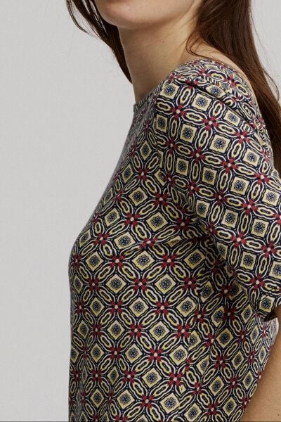 Entdecke unser charmantes Mini-Kleid aus luxuriöser Biobaumwolle – ein zeitloses Stück für stilvolle Momente! Der A-Linien-Schnitt verleiht diesem Kleid eine elegante Silhouette, während die Ärmel eine zusätzliche Note der Raffinesse bringen. Die integrierten Taschen verleihen dem Kleid eine lässige Note und bieten Platz für kleine Essentials. Dank des weichen Stoffes genießt du besten Tragekomfort und unterstreichst unser Engagement für nachhaltige Mode. Durch die luftige Beschaffenheit des Materials fühlst du dich an warmen Tagen angenehm gekleidet. Mit diesem Sommerfavoriten kombinierst du zeitlose Eleganz mit umweltfreundlicher Mode. Genieße die Vielseitigkeit dieses Kleidungsstücks, das gleichermaßen für formelle Anlässe wie für entspannte Tage geeignet ist. Tauche ein in die Welt der nachhaltigen Mode und erlebe, wie dieses Kleid zu einem unverzichtbaren Teil deines stilvollen Auftritts wird. Material: Stretch-Jersey aus 95 % Baumwolle (bio), 5 % Elasthan, GOTS-zertifiziert Passform: Gesamtlänge bei Größe S – 94 cm – Minikleid – Hoher Tragekomfort – Mit Stretchanteil – Weiche Stoffbeschaffenheit – All-Over-Print – A-Linie – Elegant fallend – Taillierter Schnitt – GOTS-zertifiziert, aus Biobaumwolle – CU844876
