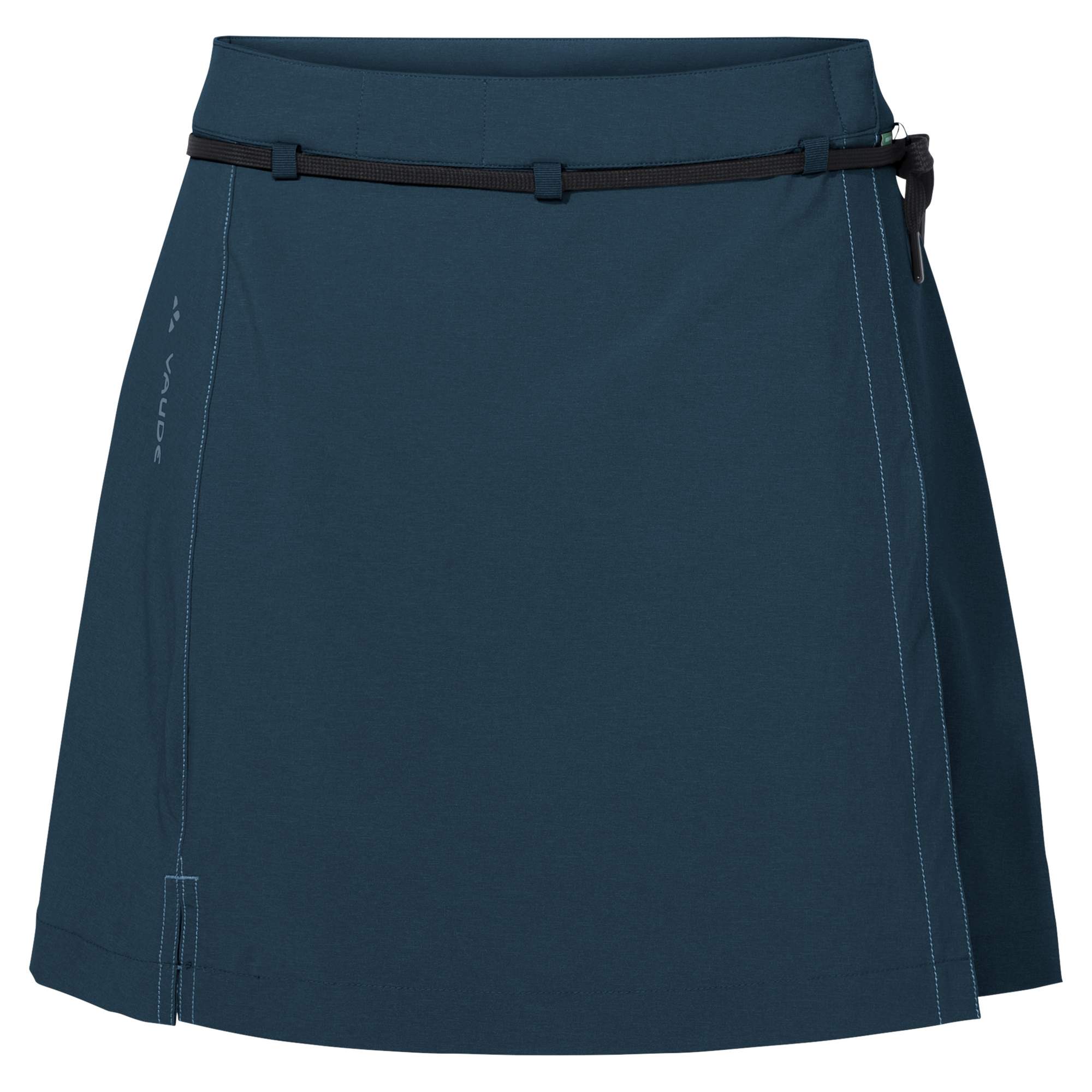 Rock and Ride Schicker Fahrrad-Rock für die sommerliche Radtour: Der Tremalzo Skirt IV hat eine Innenhose. Die kannst du aus dem Skirt herausknöpfen; so trägt sich der Rock genauso unkompliziert wie eine Radshorts! Der Rock selbst ist aus einem dünnen, angenehm glatten Material gearbeitet; dieses ist zudem sehr elastisch. Geschlossen wird der Tremalzo Skirt IV über einen innenliegenden Knopf plus Klettriegel. Dank zweier Knöpfe lässt sich die Weite regulieren. Außen hast du zusätzlich eine dekorative Kordel zum Schnüren. Durch das dünne, druckentlastende Sitzpolster der Innenhose sind auch längeren Touren bequem zu fahren. Das pflegeleichte Material des Rocks ist elastisch, atmungsaktiv und schnelltrocknend. Innenhose mit spezifischem Sitzpolster Bequem für längere Tagesetappen: Das Womens Active Cycling Sitzpolster in der Innenhose hat eine frauenspezifische Passform. In Schaumdichte und Form wurde es für Gelegenheits- und Freizeitradlerinnen entwickelt. Es ist auf eine niedrige bis mittlere Intensität beim Training ausgelegt. Viel Funktion sowie Nachhaltigkeit Vaude legt großen Wert auf Nachhaltigkeit. Das erkennt man an dem hohen Anteil an recycelten Materialien in diesem Rock. Zudem trägt er Vaudes Green Shape Label, welches für ein umweltfreundliches, funktionelles Produkt aus nachhaltigen Materialien steht. Details Elastischer Fahrrad-Rock inklusive Innenhose mit Sitzpolster (Dicke 8 mm) Elastisch, feuchtigkeitsleitend und schnelltrocknend Überwiegend aus recycelten Materialien hergestellt Bund mit Gürtelschlaufen Bund weitenregulierbar Kontrast-Ziernähte im Vorder- und Rückenteil