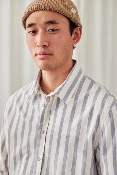 Unser Campana Hemd besticht durch die weichsten vertikalen Streifen und nachhaltigste Stoffe. Mit einer „Twothirds“ bestickten Knopfleiste, kleinen Seitenschlitzen und einer Aufhängeschlaufe am Joch. Ein Hemd mit regulärer Passform und zeitlosem Design. Hergestellt in Portugal aus 58 % Bio-Baumwolle, 23 % recyceltem Polyester und 19 % recycelter Baumwolle. Frei von Pestiziden, reduziert Wasserverbrauch und hilft, Plastik- und Stoffabfälle zu vermeiden. Abgerundet mit einer nachhaltigen Bioharz-Knopfleiste. Vegan. Modellgröße: 1,80m, trägt Größe M.
