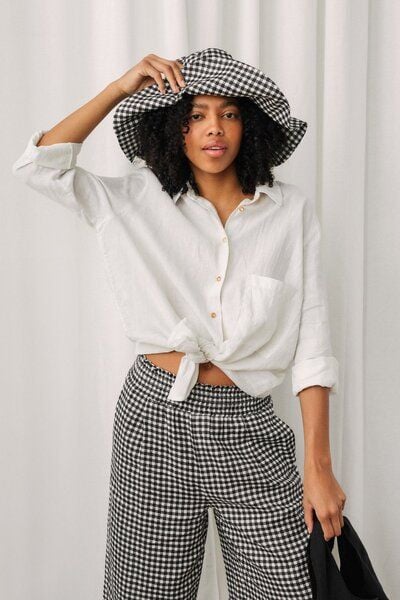 Ein übergroßes Leinenhemd, das unendliche Outfit-Inspiration bietet: Binden Sie es vorne zusammen oder tragen Sie es schulterfrei, mit Gürtel als kurzes Kleid, über einem Unterhemd, teilweise geknöpft… die Möglichkeiten sind endlos! Mit einer einzigen Fronttasche und grenzenlosem Fluss und Stil. Design aus Barcelona. Hergestellt in Portugal. 100% Leinen. Atmungsaktiver und weicher Stoff mit temperaturregulierenden Eigenschaften. Nachhaltige Corozo-Knöpfe. Vegan. Das Model ist 1,73 m groß und trägt Größe S.