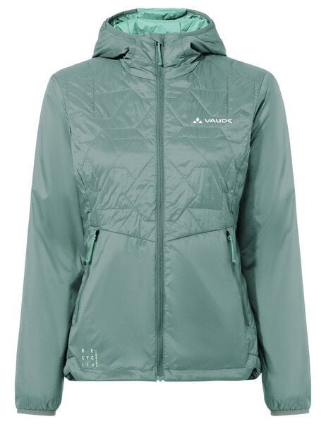 Egal ob Bergtour, Klettersteig oder kurze Wanderung: Wer im alpinen Gelände unterwegs ist, muss stets damit rechnen, dass das Wetter umschlägt. Die leichte Freney VI Isolationsjacke für Damen lässt sich super klein in der eigenen Fronttasche verstauen und ist so der ideale Wärmespender zum Immerdabeihaben. Anders als Daune hält die Kunstfaserfüllung auch in feuchtem Zustand zuverlässig warm. Perfekt für sportliche Aktivitäten, bei denen Frau auch schon mal ins Schwitzen kommt. Die eng anliegende Kapuze und der einhändig regulierbare Bund halten kalten Wind draußen. Alpines Design: Die beiden Reißverschluss-Fronttaschen sind so positioniert, dass sie auch bei angelegtem Klettergurt problemlos zu erreichen sind. Und dank der vorgeformten Ärmel rutscht die Jacke auch bei hohen Griffen über Kopf nicht aus dem Gurt. Der abriebfeste Oberstoff der Freney VI Isolationsjacke für Damen ist mit Eco Finish PFC-frei wasser- und schmutzabweisend ausgerüstet. So kann die Jacke nicht nur als wärmende Schicht unter einer Hardshell, sondern auch solo als äußere Lage getragen werden. Das VAUDE Green Shape-Label steht für ein umweltfreundliches, funktionelles Produkt aus nachhaltigen Materialien. Als Mitglied mit Leader Status bei der unabhängigen Organisation Fair Wear engagiert sich VAUDE für faire Arbeitsbedingungen und faire Löhne.
