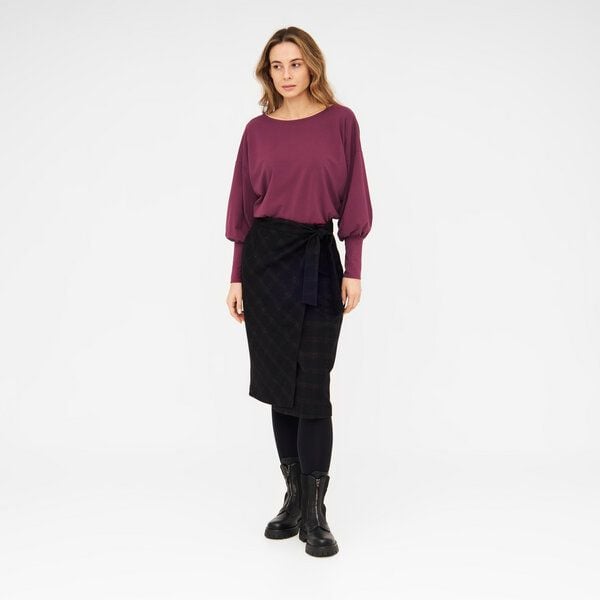 LONGSLEEVE AVA BEERE AUS BIO – BAUMWOLLE Das Longsleeve AVA in Beere bringt Farbe in Deinen Alltag und ist dabei ebenso vielseitig wie zeitlos. Du kannst es mit V- oder Rundhalsausschnitt tragen – je nach Stimmung und Anlass. NACHHALTIGES LONGSLEEVE IN KRÄFTIGEM BEERE Das zertifizierte Bio-Baumwoll-Jersey sorgt für ein angenehmes Hautgefühl, während die langen, schmalen Ärmelbündchen den femininen Schnitt betonen. In Beere wirkt das AVA elegant und gleichzeitig modern – ein Statement-Piece für Deine Capsule Wardrobe. DEIN ALLROUNDER FÜR ALLTAG & BÜRO Kombiniere das Longsleeve AVA Beere zu Jeans für einen entspannten Look oder style es mit einem Rock für ein feminines Outfit. Durch den warmen Beerenton passt es perfekt in die Herbst- und Wintergarderobe. MATERIAL 95% Baumwolle (Bio) zertifiziert, 5% Elastan Das Material ist streng zertifiziert. Da wir als kleines Unternehmen aber nicht selbst zertifiziert sind, dürfen wir dies hier nicht namentlich erwähnen. Doch alle, die sich ein wenig auskennen, wissen sicher, wovon wir sprechen. PFLEGEHINWEIS 30°C Feinwäsche